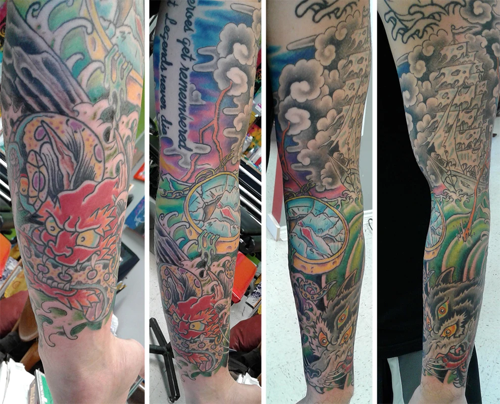 Lil Dustin apprenticed under Big Dustin Whelan at Bad Boyz Tattooz in Clear Lake, Texas & has been tattooing for over 8 years. Dustin is a Houston native that grew up in Pasadena. Though he has taken a few art classes in his life, he’s a self taught artist that lives & breathes art. Dustin loves to design & create traditional Japanese-style tattoos (especially large panel work) but can also work in many other styles. He also enjoys doing “fine line” tattoos. Dustin can be found at Zen Body Art every Tuesday, Wednesday, Friday, Saturday & Sunday (he’s off Mondays & Thursdays).